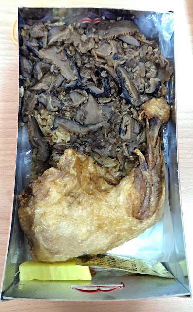 由於小瑰吃太多糯米會脹氣,所以,接到時只試吃了一口油飯和雞腿,嗯...香菇沒味道...油飯有點硬...但是雞腿就灰常的香Q夠味囉!