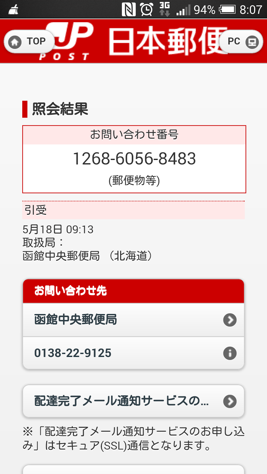 當貨物寄出時,wifi屋還是有寄mail給小瑰,裡面還附有郵局查件的連結,按一下就知道貨物到了沒!