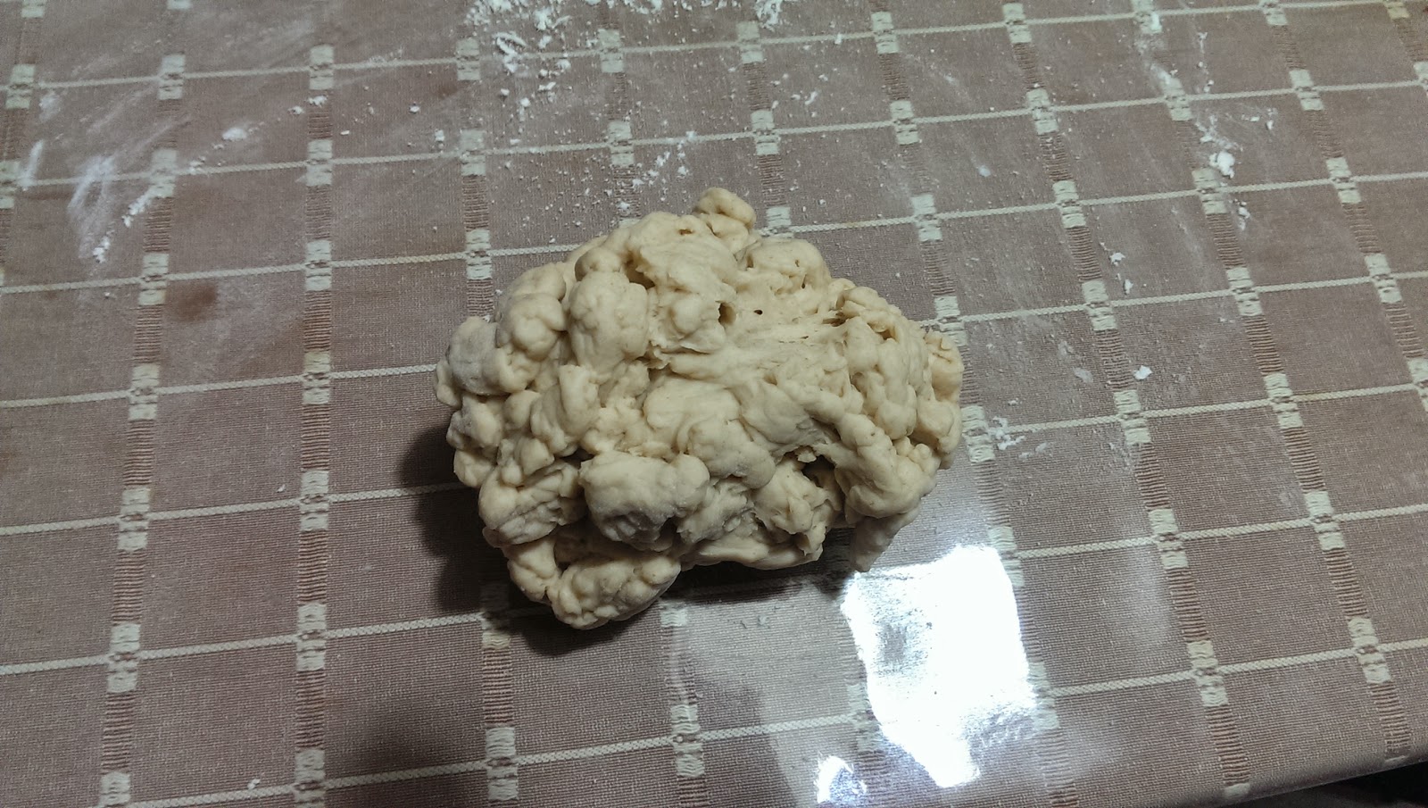 就變成這樣,看起來應該是水分不足,所以小瑰又再將麵團丟進去,再加水揉麵。
