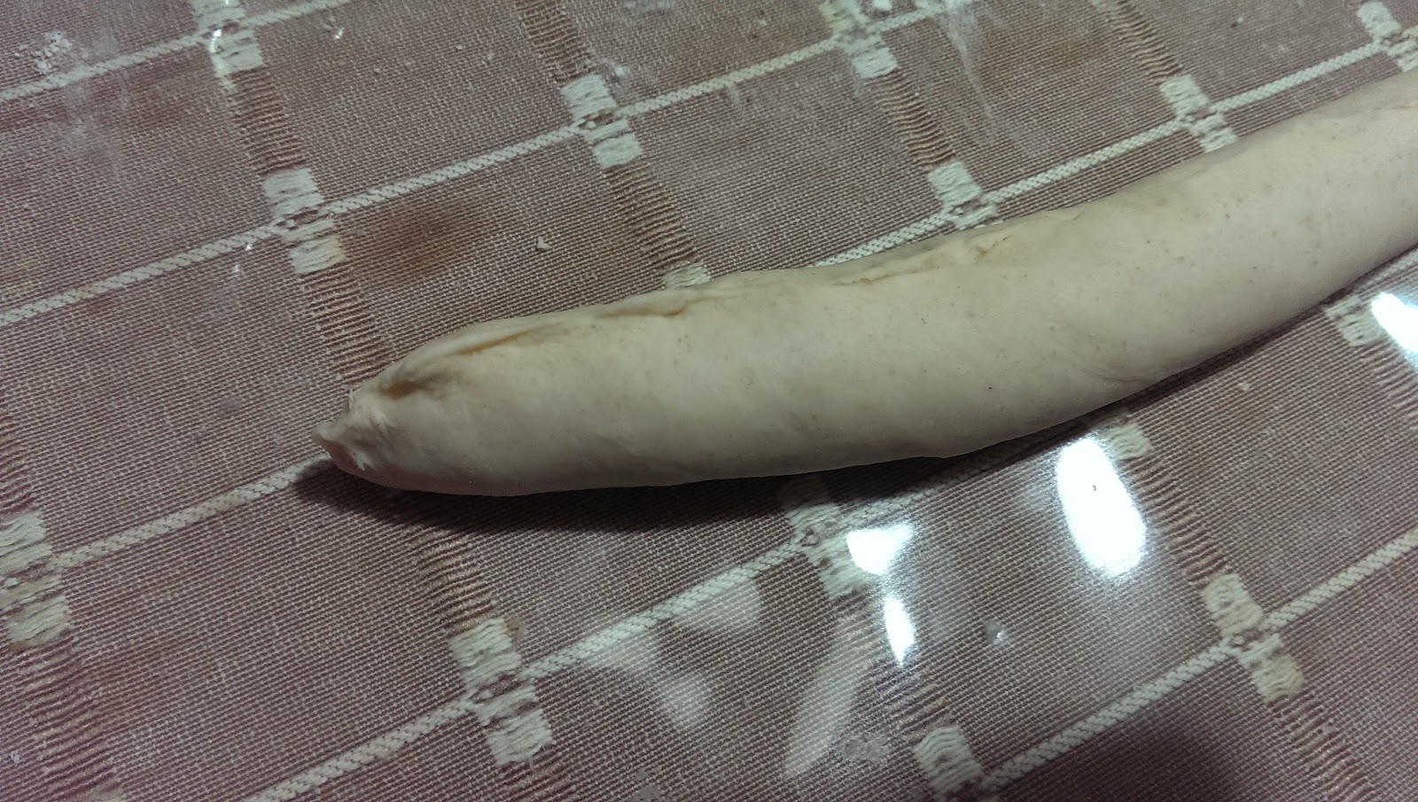 3.麵團鬆弛15分鐘,再分成四等分後再鬆弛15分鐘,之後先搓成長條∼