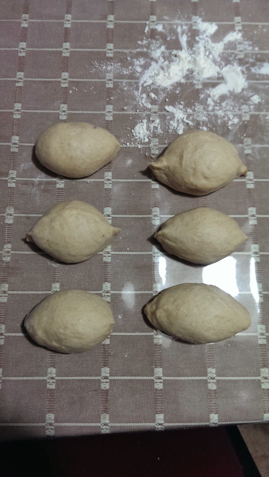 5.取出麵團整型成6份,鬆弛15分鐘。烤箱記得先預熱180度。
